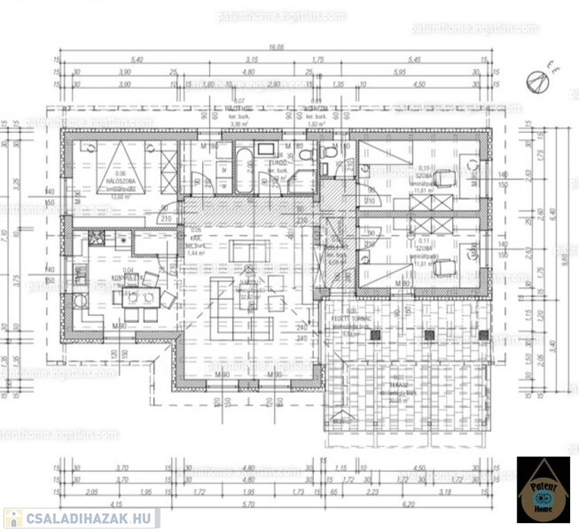 - 500 nm-es telek, 12 nm terasz