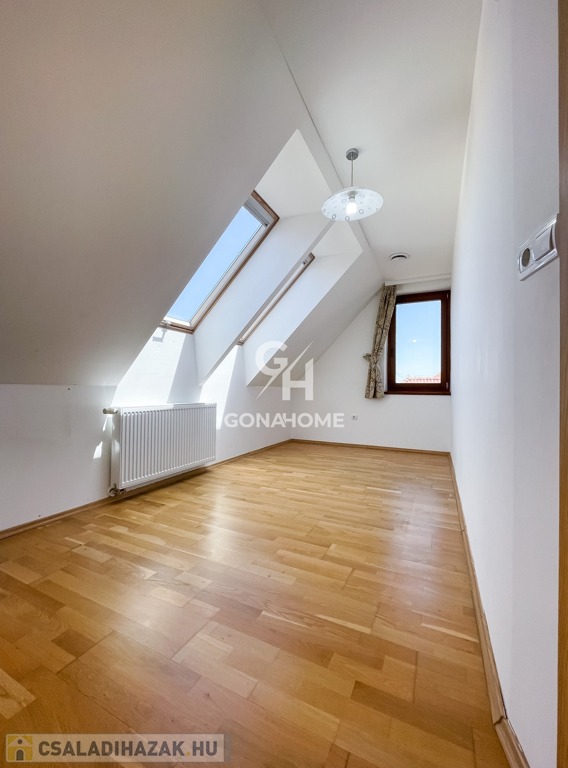 A tetőtérben található 4 szoba, egyhez tartozik egy gardróbszoba és egy erkély, továbbá található mosókonyha, fürdőszoba káddal, zuhannyal és WC-vel, külön WC, tárolóhelyiség.