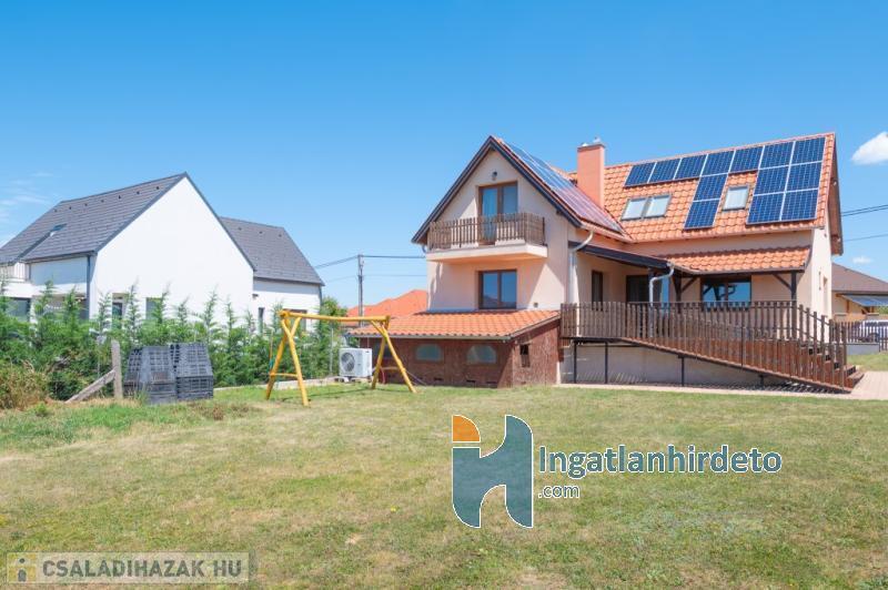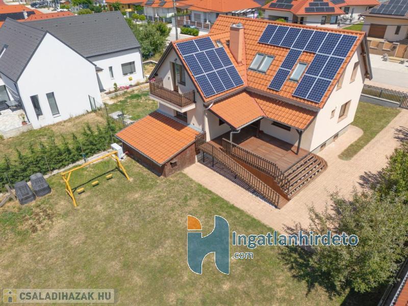 Nemesvámoson, Veszprémtől 4 km-re, a falu új lakónegyedében, 7 szobás (4+3), tetőtér beépített, alápincézett, 2013-ban épült, AZONNAL KÖLTÖZHETŐ családi ház magánszemélytől eladó.