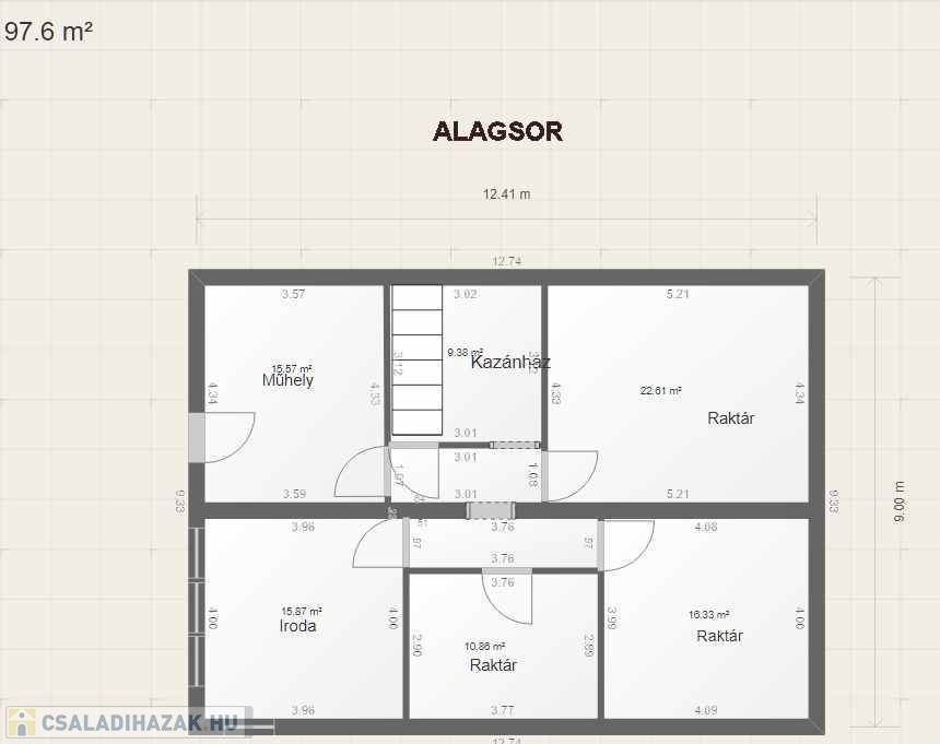 - a 95 m2-es fűthető szuterén szint kiválóan alkalmas saját vállalkozás működtetésére, mely az udvar felől külön bejáratról és a lakórészből is megközelíthető