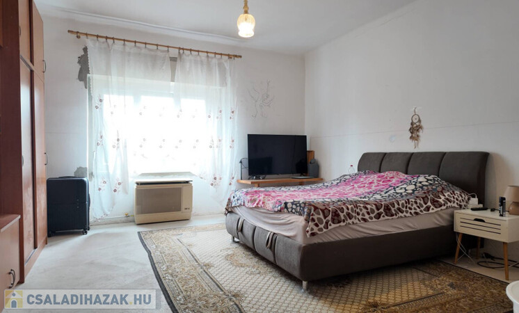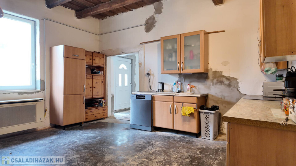 Elosztása: tágas előtér, 2 nagy szoba, nappali kemencével, nagy konyha-étkező, tusolós fürdőszoba, spájz.