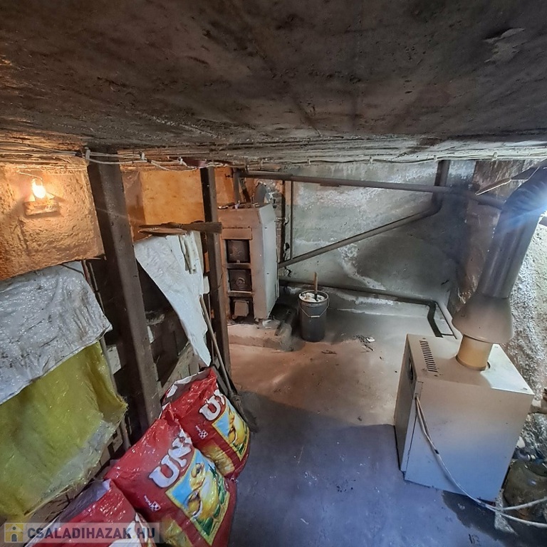 A ház 1/3-ad része alatt pince található, itt van elhelyezve a gáz-, és vegyestüzelésű kazán is, mely a fűtést biztosítja, a melegvíz ellátás villanybojlerről.