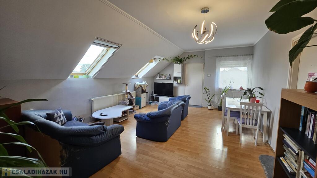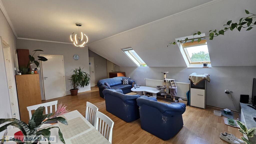 tetőtér 85 m2: előszoba, 2 szoba, nappali, fürdőszoba, WC, konyha