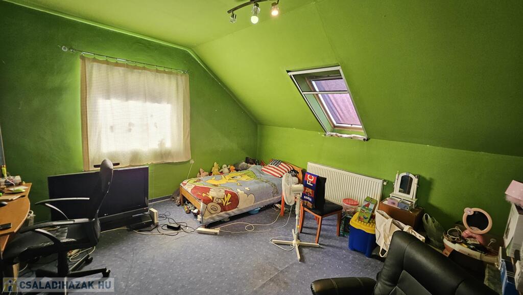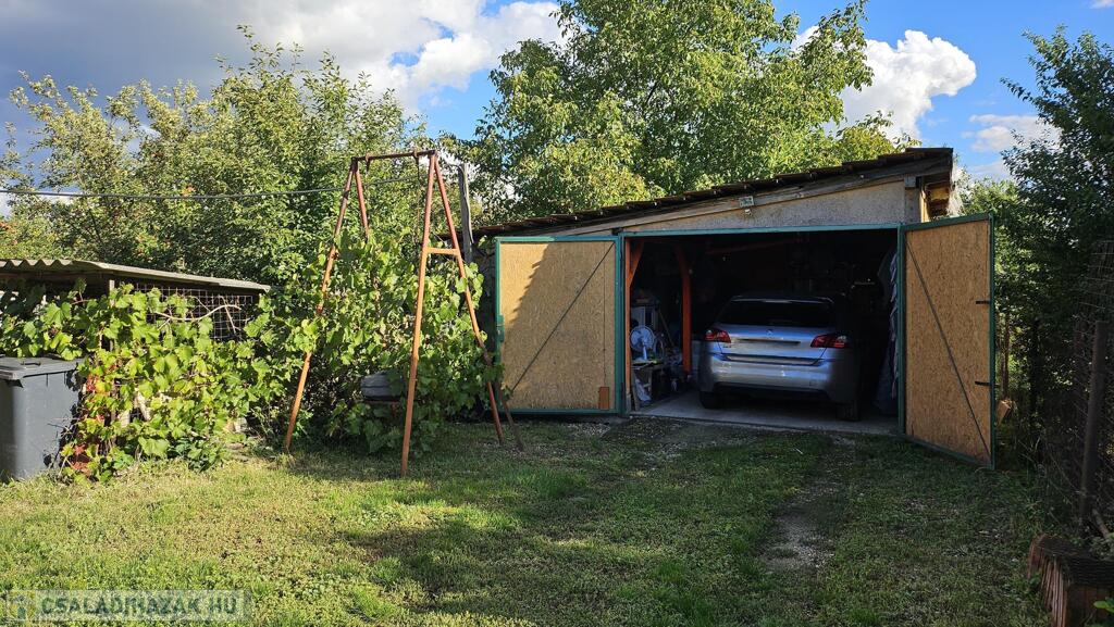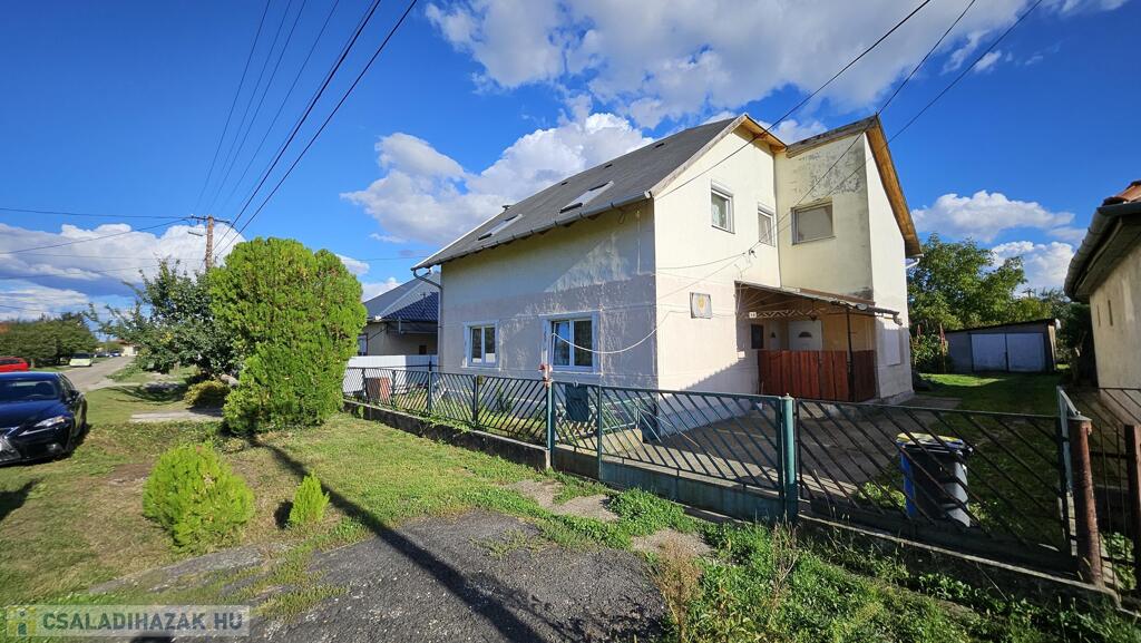 Nyékládházán, kertvárosi környéken, fsz.+ tetőtér szintmegosztású, D-Ny.-i tájolású, téglából épült, műanyag