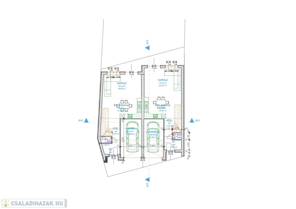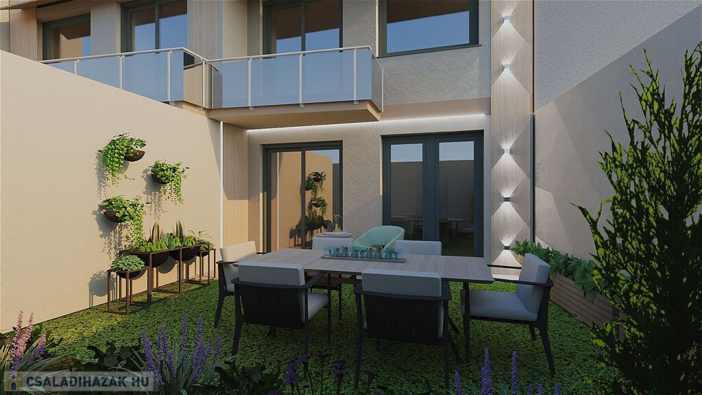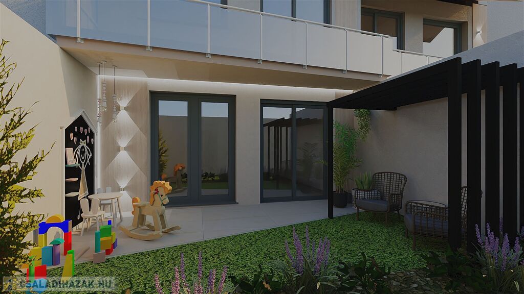 A 3 szoba + nappali-konyha-étkező elrendezésű otthon kiváló beosztású:– a tágas nappali közvetlen teraszkapcsolattal nyit a kertre,– két fürdőszoba és két WC biztosítja a kényelmet,– háztartási helyiség és külön gardrób is helyet kapott – ahogy egy igazán jól megtervezett otthonban elvárható.