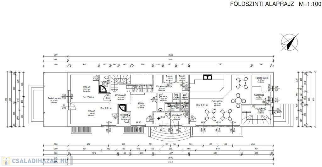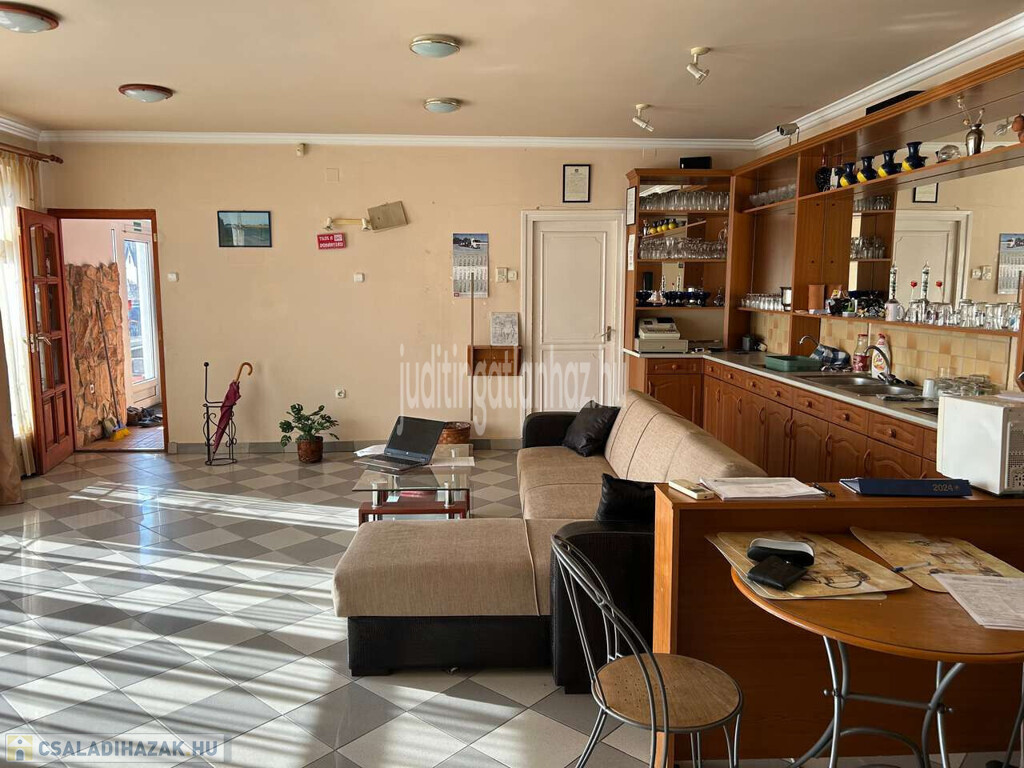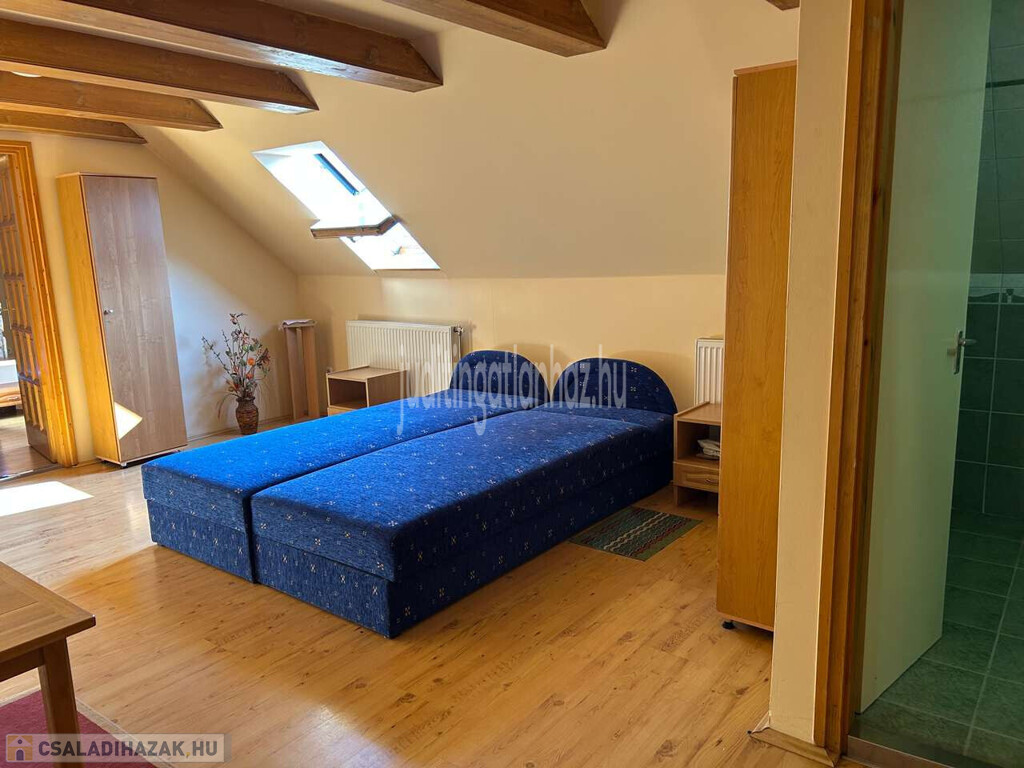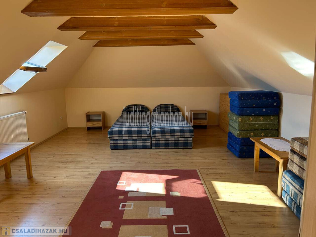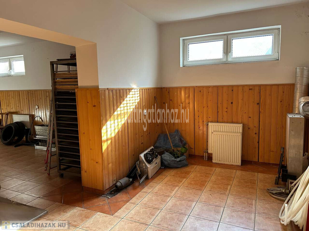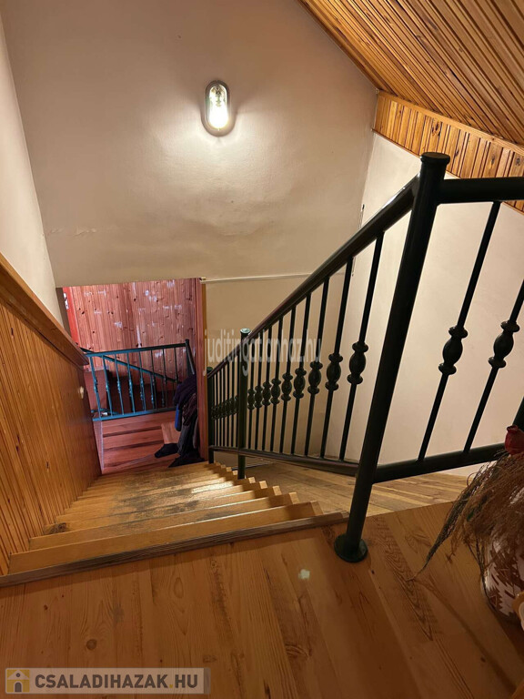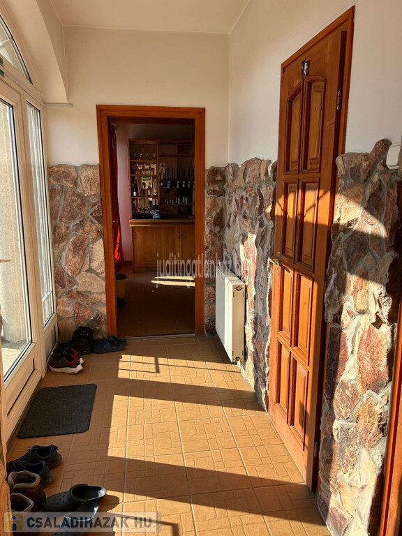 Nyíregyháza, Sóstóhegyen eladó 170 m2-s, öt szobás, kettő nappalis, négy fürdőszobás, két külön wc, kamra, műanyag nyílászárós, egyedi gáz és vegyes fűtésű, riasztóval felszerelt, 5 hűtő klímás, 30-s porotherm téglából épült, külsőleg 5 cm szigetelés borított, beton födémes rajta 40 cm salakgyapot szigetelés, dupla fedésű bramac betoncseréppel fedett jó állapotú szintes családi ház a hozzá tartozó 30 m2-s fedett, burkolt terasszal. Az ingatlan alatt teljes pince található mely burkolt és több fajta vállalkozásra alkalmas az 1250 m2-s zárt telken kiépített öntözőrendszer, fúrott kút, térkövezett nagy parkoló és két állásos garázs található.