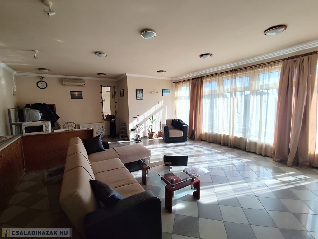 Az ingatlan lakótere 170 nm, mely két szinten oszlik meg. A jelenleg kialakított terek egybenyithatóak, vállalkozás szempontjából több tevékenységi célra is alkalmas. Hívjon, ha szeretné megtekinteni!