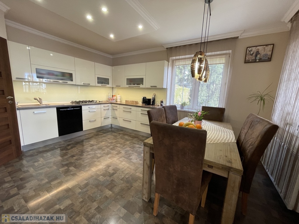 A ház műanyag nyílászárókkal felszerelt, egyedi gázfűtéssel rendelkezik, melyet kandalló egészít ki. A kellemes hőmérsékletről klíma gondoskodik. A helyiségek burkolata járólap és laminált padló kombinációja. A beépített, gépesített konyha a vételár részét képezi. Az ingatlan riasztórendszerrel ellátott.