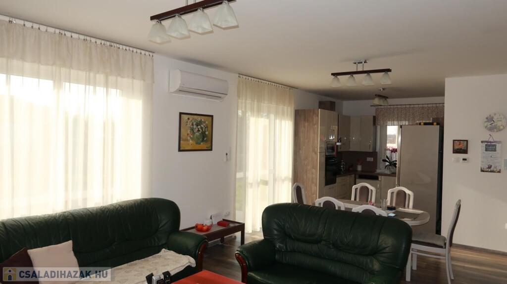 Nyíregyháza-Oros csendes környékén, 2019-ben épült, 143 m2-es 3 szoba, nappalis, nagy teraszos önálló családi ház , plusz 144 m2-es gazdasági épület., valamint 32 m2-es garázzsal, kiváló állapotban, 8500 nm-es telekkel eladó. Az ingatlanba prémium minőségű anyagok kerültek beépítésre. A rendkívül jó elosztású ház tágas, világos, déli fekvésű nappalival, egyedi, kiváló minőségű beépített konyhával, spájzzal, két fürdőszobával. mosókonyhával és gardrób szobával rendelkezik. Az otthon melegét egy gyönyörű cserépkályhán kívül infra padlófűtés adja. Az ingatlan teljes elektromos fogyasztását 11, 6 KW-os napelem biztosítja, mely igény esetén 20 %-al bővíthető, ezért csupán a víz és csatornadíj jelenik meg havi rezsi költségben. A főépület 20 cm-es szigeteléssel ellátott, műanyag nyílászárók kerültek beépítésre, az energetikai besorolása CC. Gazdasági épület bruttó 144 m2 alapterületű, mely áll egy 88 m2 egylégterű helyiségből, valamint konyha, mosdó és WC helyiségekből áll. Fűtése infra panel és klíma. A gazdasági épület bármilyen célra hasznosítható, ugyanolyan anyagokból épült, mint a családi ház, így akár lakás célra (kétgenerációs lakhatás) is átalakítható. A fűtése infra panel, a szigetelés 15 cm. Az udvar parkosított, öntözőrendszerrel ellátott, a bejárat automata kapuval van felszerelve. Amennyiben szeretne csendes helyen, jó levegőn lakni és felkeltettem az érdeklődését, bátran hívjon!Az ingatlan azonosítója: 90945Érdeklődni: +36703610015 Az ingatlan azonosítója: 90945 Érdeklődni: +36703610015