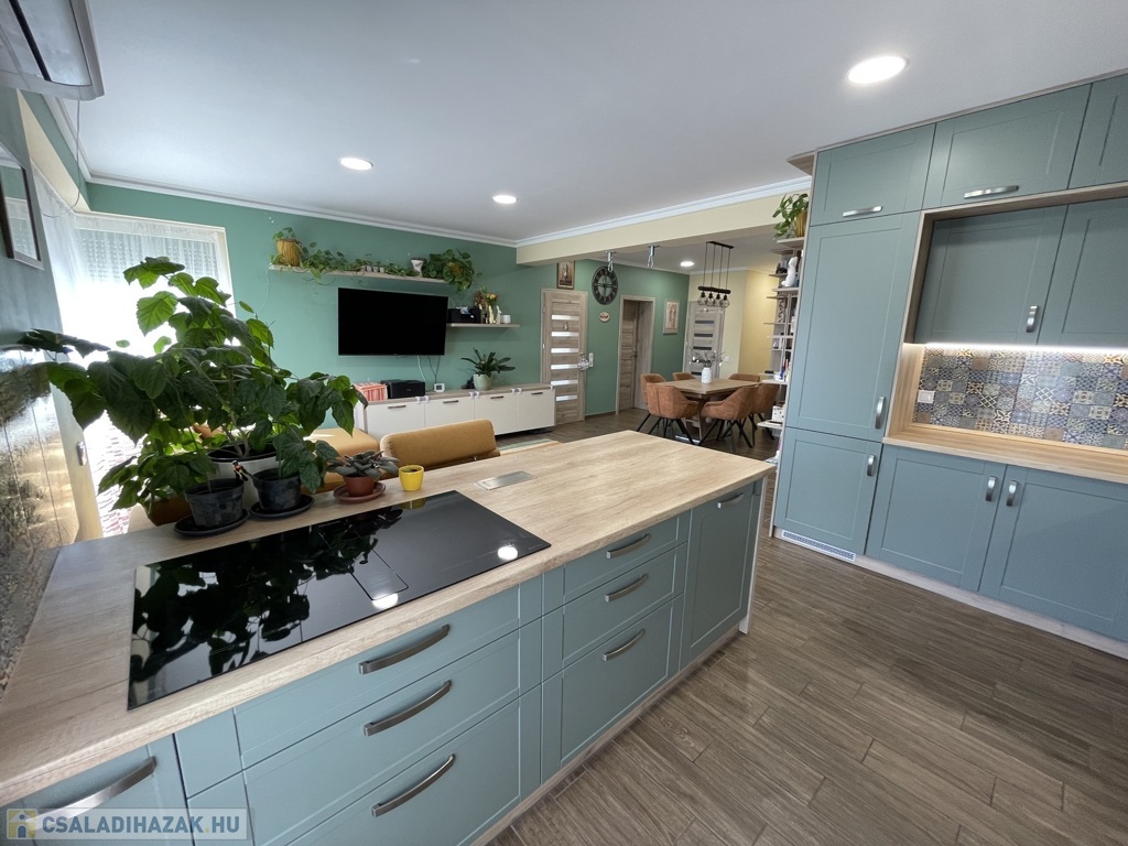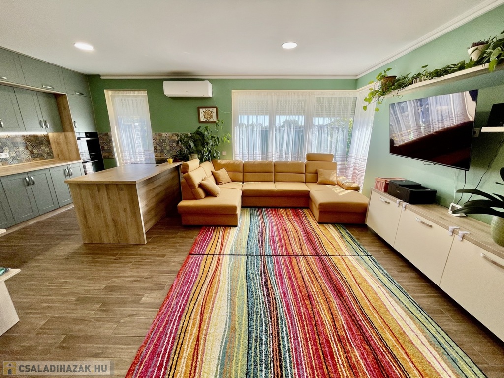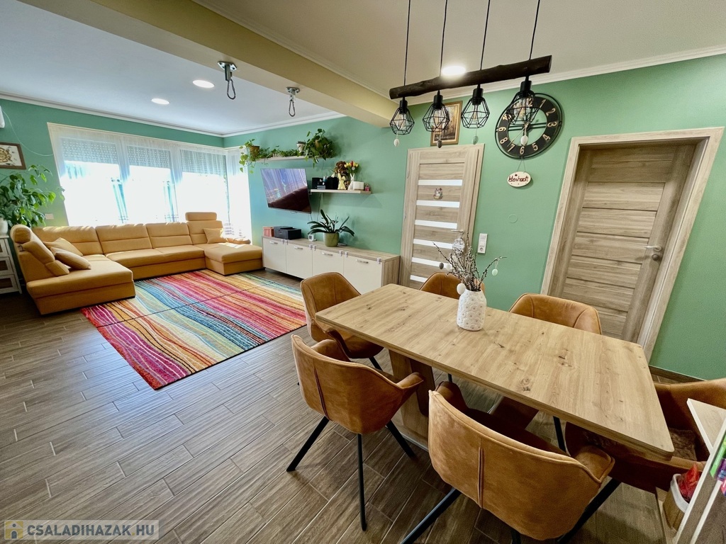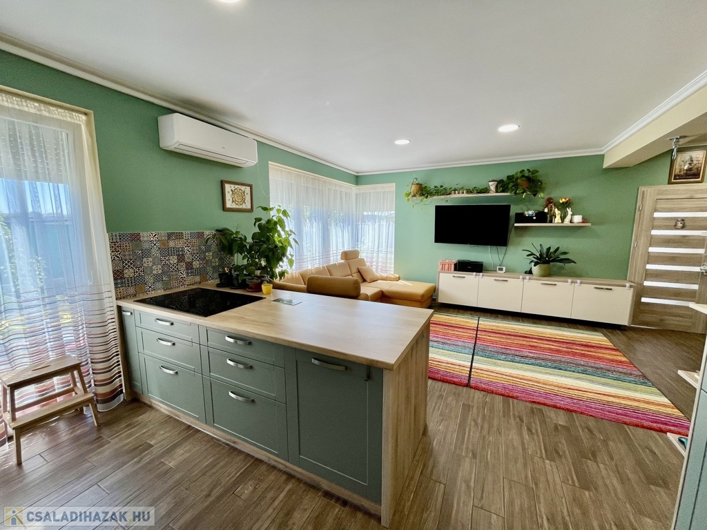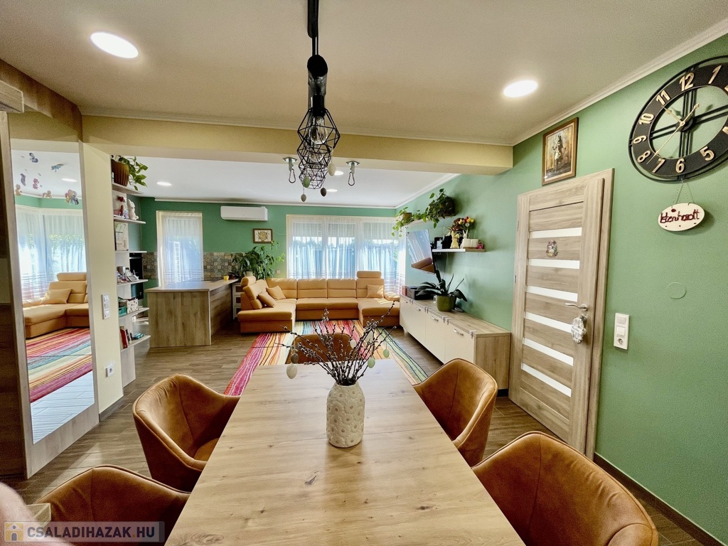 A ház szigetelt, tégla falazatú, újszerű állapotú, 2024-ben épült, 144 nm, hőszivattyús fűtéssel, minden helyiségben klíma vezeték előkészítéssel, melyből 2 db beépítésre került, részben elektromos redőnnyel szerelt, műanyag nyílászárós, laminált padló, járólap burkolatú.