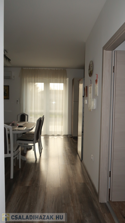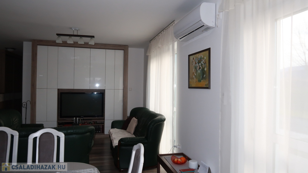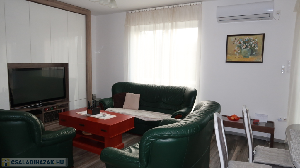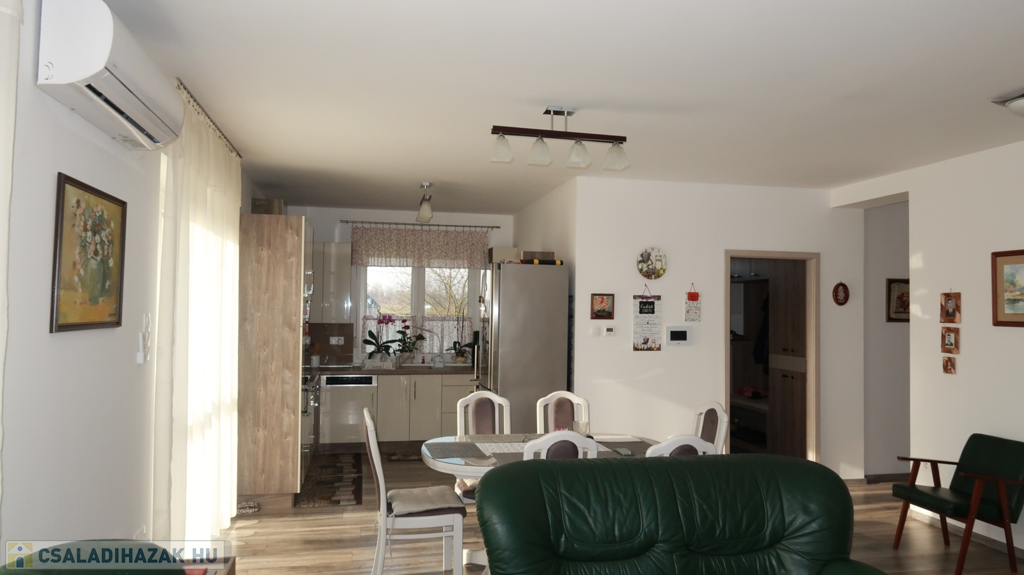 Az ingatlan 8500 nm-es telken helyezkedik el, 2019-ben téglából épült 20 cm szigeteléssel, a 143 nm-es főépületben nappali, 3 szoba, nagy terasz, konyha, kamra, mosókonyha, fürdőszoba, gardrób található. Fűtése infrapanel padlófűtés, nagy méretű cserépkályha, klíma biztosítja.