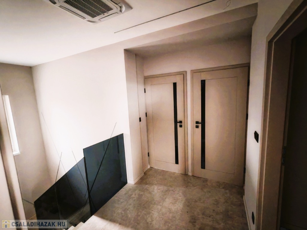 Felső szint: 3 külön nyíló szoba, fürdőszoba - WC, gardróbszoba.