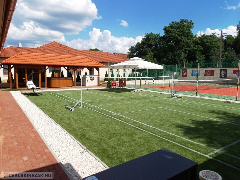 A ház modern és kényelmes életet biztosít, miközben a környezet is maximális pihenést kínál. A parkosított kert, a medence és a teniszpálya lehetőséget adnak a szabadidő aktív eltöltésére, míg az épület belső terében minden igényt kielégítő luxus várja leendő tulajdonosát.