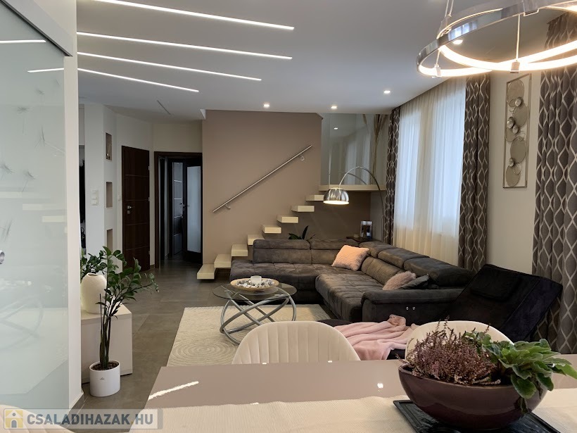 A 2018-ban épült, modern, minimalista stílusú főépület nettó 140 m² alapterületű, kétszintes kialakítású.Elrendezése: nappali + 4 hálószoba.Padlófűtéssel, 5 kW-os, szaldós elszámolású napelemes rendszerrel, elektromos redőnyökkel és egy 30 m²-es fedett terasszal rendelkezik.A kiváló szigetelésnek és korszerű gépészetnek köszönhetően a fenntartási költsége rendkívül alacsony.