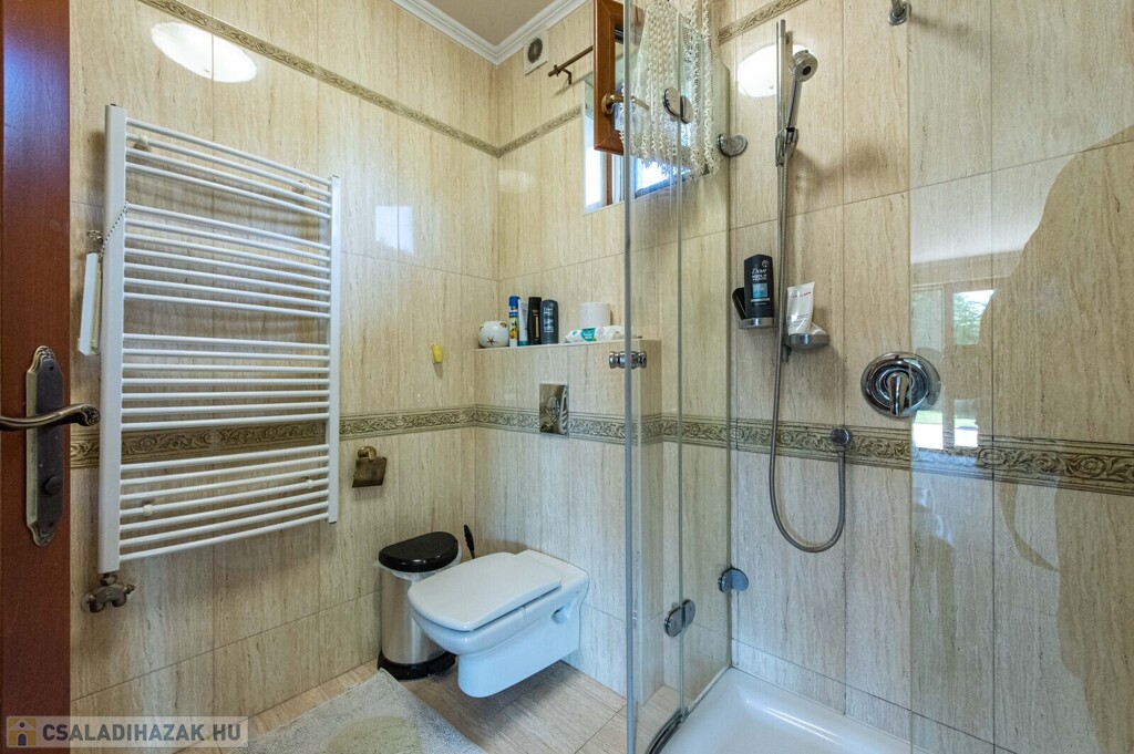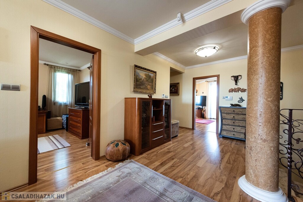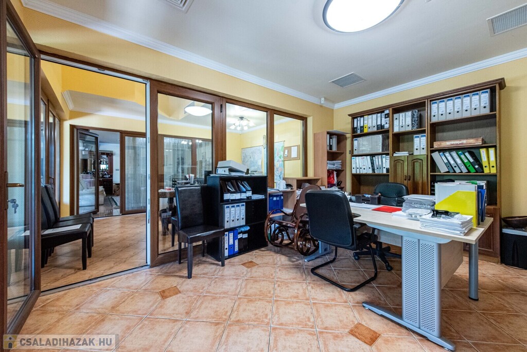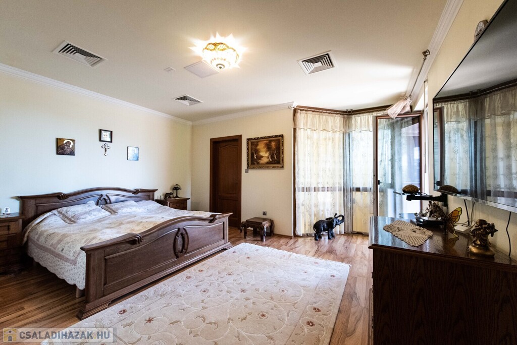 Nyíregyházán, Oros elején, minden igényt kielégítő, 620 nm összterületű, 2009-ben Ytongból épült, 4 szoba + tágas konyha étkező nappalival. Az ingatlan 2 szintes, alsó szintjén nappali, konyha, étkező, 1 hálószoba, 2 fürdő wc-vel, terasszal, felső szintjén 3 hálószoba, fürdőszoba, mellékhelyiséggel valamint egy gardrobe szoba található. járólap és laminált padló burkolatú, 2 db kondenzációs gázkazánnal és minden fő helységben klímával. Az ingatlanhoz tartozik egy 45 nm-es iroda helyiség, 40 nm-es konditerem, valamint egy 300nm-es zárt 6 x 20 m-es medence amelyet nyáron a napkollektor télen pedig gáz hőcserélős medencefűtés rendszer fűti. A továbbiakban 2 állásos garázzsal és 2 állásos autóbeállóval, prémium minőségű nyílászárók, 11.2 KW -os napelem rendszer, 3500 nm-es gyönyörűen parkosított telken, beépített öntözőrendszerrel, filagóriával családi ház eladó.Az ingatlan azonosítója: 97247Érdeklődni: +36702560693 Az ingatlan azonosítója: 97247 Érdeklődni: +36702560693