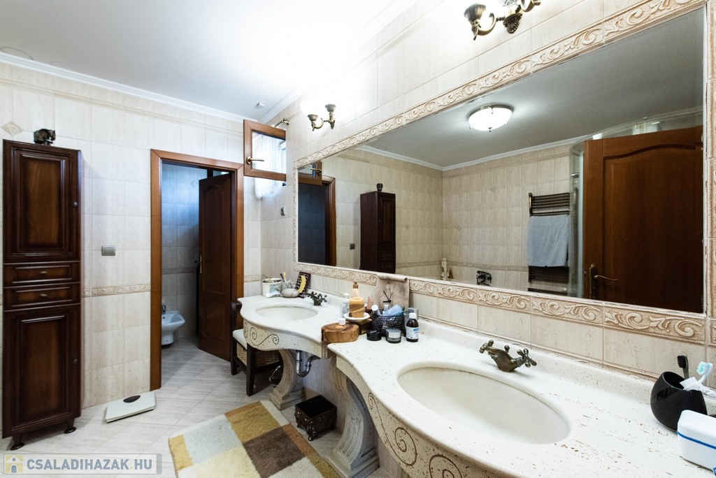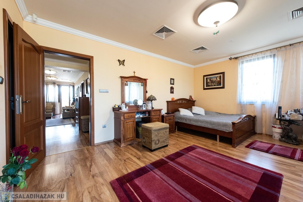 Nyíregyháza, Oros, csendes kertvárosi utcájában található ez az exkluzív kivitelű, nagyvonalú terekkel rendelkező, 2009-ben, Y-tong 38-as téglából épült, 620 nm-es családi otthont modern technológiákkal és kényelmi funkciókkal. A 4 hálószobát, nappalit magában foglaló lakótér két szinten helyezkedik el. A tágas terű nyitott konyha és nappali mellett egy hálószoba külön gardrób helyiséggel, egy fürdőszoba, spájz valamint a mosókonyha kapott helyett. A felső szinten 3 tágas hálószoba gardróbszobákkal helyiségekkel, egy kisebb nappali valamint fürdőhelyiségek találhatóak. A szobák erkéllyel ellátottak ( 15 és 25 nm ) gyönyörű panoráma kilátással a kerthelyiségre.