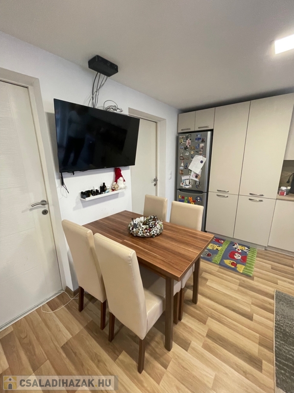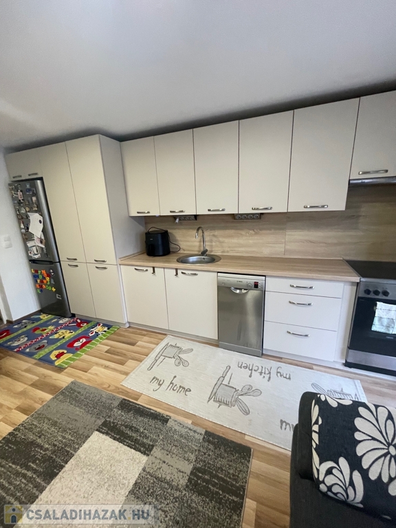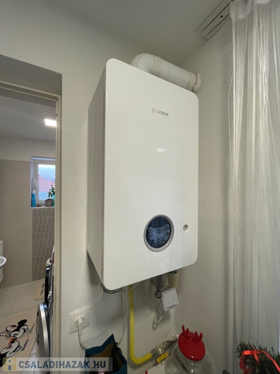 A teljesen gépesített konyhabútor a vételár részét képezi. Az otthon melegéről egyedi gázfűtés gondoskodik, radiátoros hőleadással.