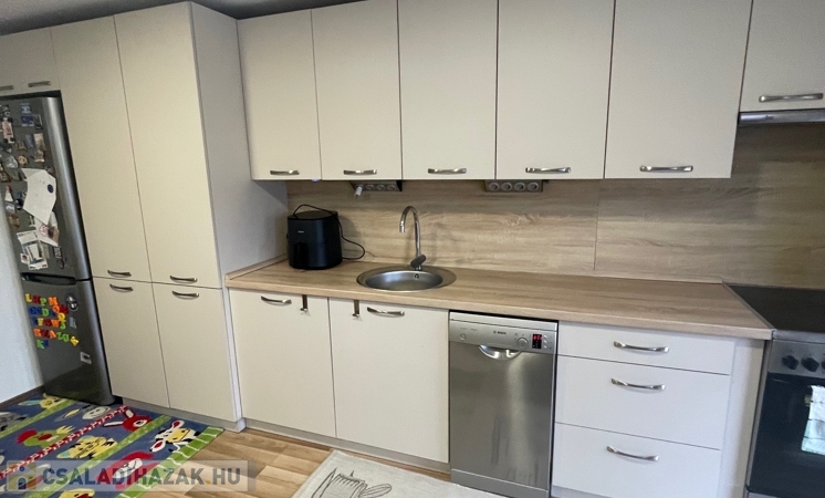 A gépesített konyhabútor a vételár részét képezi. Az otthon melegét egyedi gázfűtés biztosítja radiátoros hőleadással.