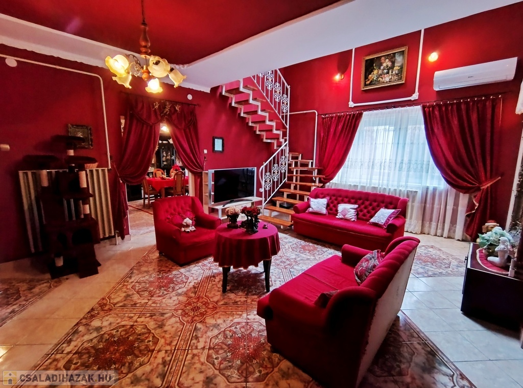 Nyíregyháza Oroson felújított 180 nm összterületű 4 külön nyíló szobás + galériás nappali, konyha + tágas étkezővel, 2 fürdő és 2 wc, járólap és laminált parketta burkolatú, egyedi gázfűtéses, műanyag és hőszigetelt fa nyílászárós redőnyözve, 4 db klímával, 16 nm-es terasszal, 1 állásos garázzsal, 10 cm-es homlokzati hőszigeteléssel ellátott szintes önálló családi ház, 1173 nm-es terasszal eladó. A ház alatt található kb 40 nm-es egy légterű pince. Földszinten, található 2 hálószoba, nappali, étkező, konyha, külön fürdő és wc, és terasz. Emeleten, 2 erkélyes hálószoba, társalgó, fürdő wc-vel és gardrób.Az ingatlan azonosítója: 94541Érdeklődni: +36702560693 Az ingatlan azonosítója: 94541 Érdeklődni: +36702560693