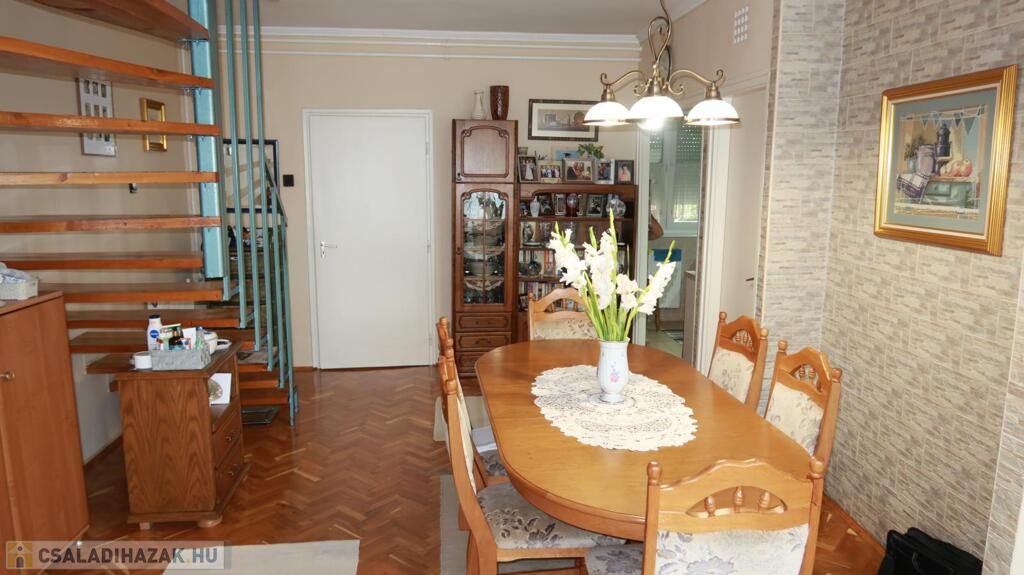 Nyíregyháza Ságvári Kertváros kedvelt környékén, 130 nm-es, 3 szoba, Nappalis, kívülről szigetelt, nagy erkélyes, műanyag nyílászárókkal, redőnnyel és rovarhálóval felszerelt, egyedi gázfűtéses, járólap és parketta burkolattal rendelkező, téglából épült sorház, biztonsági bejárati ajtóval, új konyhabútorral, felújított fürdőszobával, 21 nm-es garázzsal eladó. A tető és a földszinti nappali burkolata felújításra került. A földszinten előtér, nagy nappali, konyha, spájz, zuhanyzó wc-vel, emeleten előtér, két szoba, fürdőszoba, külön wc-vel, tetőtérben egy nagy szoba található. Az udvar tágas, részben térkövezett és parkosított, mely közös osztatlan tulajdont képez. A közelben buszmegálló, iskola, óvoda, játszótér, boltok is vannak. Az ingatlan fenntartási költségei nagyon kedvezőek. Várom komoly érdeklődők hívását!Az ingatlan azonosítója: 91001Érdeklődni: +36703610015 Az ingatlan azonosítója: 91001 Érdeklődni: +36703610015