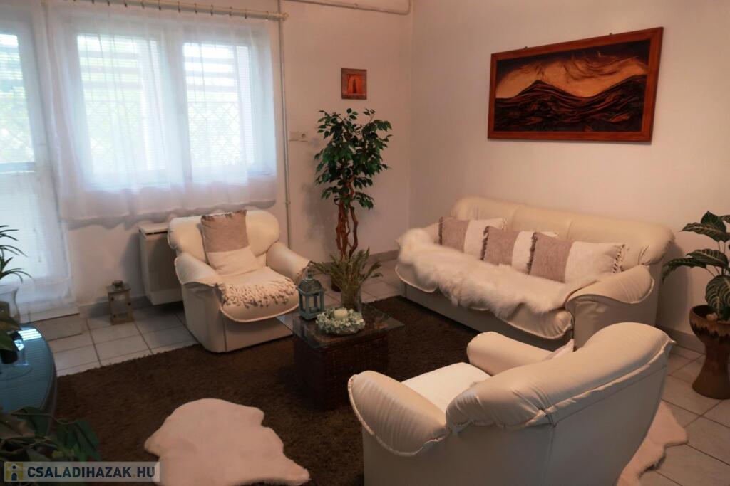 Nyíregyházán, Nyírszőlősben megvételre kínálunk egy vegyes falazatú, 2 N + 3 SZ, étkezővel rendelkező, 140 nm-es egy szintes családi házat. Az ingatlan egy 669nm-es gyönyörűen parkosított telken helyezkedik el, Nyírszőlős egyik kedvelt, csendes utcájában. Az ingatlan alsó szintjén egy nappali, étkező, konyha, hálószoba, spájz és egy fürdőszoba külön mellékhelyiséggel, a fenti szinten nappali, 2 szoba, zuhanykabinos fürdőszoba, külön mellékhelyiséggel kapott helyet. Az ingatlant továbbá fa nyílászárók, reluxák, járólap és parketta burkolatok, tetőszerkezete Bramac tetőcserép, fűtése egyedi gáz, gázkonvektor fűtés jellemez. Az ingatlan értékét egy fedett 12 nm-es pihenő terasz, valamint egy filagória és szalonna sütő is emeli. Az ingatlan per és tehermentes. Kérem keressenek bizalommal.Az ingatlan azonosítója: 47806Érdeklődni: Bugyi Zsuzsa +36304092510Az ingatlan azonosítója: 90600Érdeklődni: +36304092510 Az ingatlan azonosítója: 90600 Érdeklődni: +36304092510