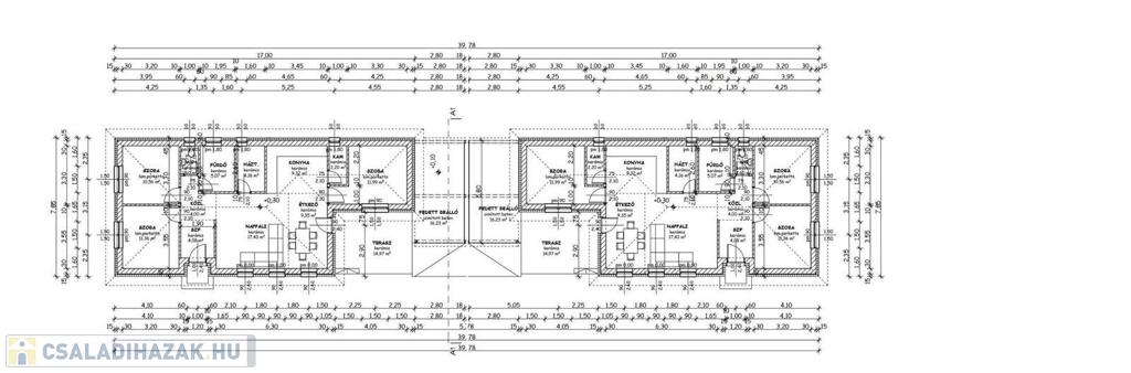 2 ingatlan: 90 nm + 17 nm Garázs Nappali, Étkező, Konyha + 3 szoba. 1500 nm-es telek, 69 M FT.