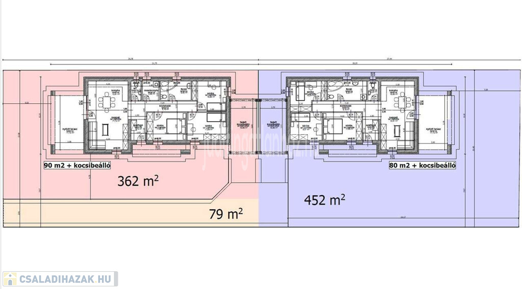 Nyíregyháza, Ságvári kertvárosban 2025-be épülő új építésű iker ház lefoglalható. Az ingatlan hasznos alapterülete 80 m2-s, három hálószoba, nappali+amerikai konyha, fürdőszoba+wc, kamra, nyitott terasz, Porotherm 30-s téglából épül, külsőleg 15 cm-s szigetelés, fafödémes, mennyezete fémvázra erősített gipszkarton, beton cseréppel fedett alatta hővédő fólia. Fűtése egyedi gáz és padló fűtés, nyílászárók hét légkamrás műanyag. A 362-452 m2-es telken térkövezett bejárat utcafrontról szép kerítés. AZ IKERHÁZAK MELLÉ ÉPÜLŐ MAGÁN ÚT BIZTOSÍTJA A HÁTSÓ HÁZ MEGKÖZELÍTÉSÉT ÉS CSAK AZ AUTÓ BEÁLLÓNÁL ÉRINTKEZNEK MELY 15 M2-S BETON ALAPPAL ÉS KÖNNYŰSZERKEZETBŐL KÉSZÜL. CS.O.K. plussz igényelhető! Birtokba adás 2026 nyár!
