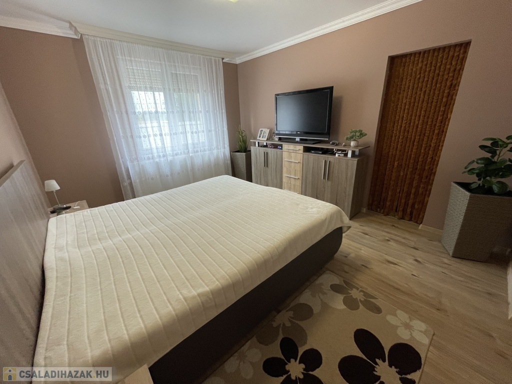 Nyírszőlős csendes, zöldövezeti részén, zsákutcában kínálunk eladásra egy 1999-ben épült, 89 m²-es, teljes körűen felújított, azonnal költözhető családi házat. Az ingatlan jelenlegi elosztása két különnyíló, tágas szobát és egy világos, amerikai konyhás nappalit kínál, azonban kis ráfordítással könnyedén háromszobássá alakítható. A fűtésről korszerű gázüzemű kondenzációs kazán gondoskodik, amely vegyes tüzelésű kazánnal is kiegészül, padlófűtéssel és radiátorokkal. A ház kiváló hőszigeteléssel rendelkezik (10 cm), műanyag nyílászárói redőnnyel és szúnyoghálóval szereltek, a nyári komfortot klíma biztosítja. A konyha egyedi tervezésű beépített bútorral és gépesítéssel kerül átadásra. Az udvarban kétállásos garázs elektromos kapuval, különálló kazánház és tároló is helyet kapott. A telek 3605 m², hátsó részén gondozott gyümölcsfákkal (három sor szilvafa), az utcafronti kapu szintén elektromos, távolról, Wi-Fi alkalmazással vezérelhető külső világítással felszerelve.