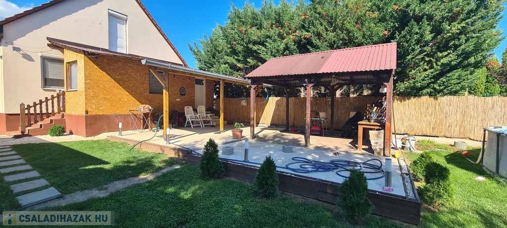 Nyíregyháza Sóstóhegyen eladó egy kiváló állapotú, szilikát és tégla építésű családi ház, amely 1528 m²-es, rendezett telken helyezkedik el. Az ingatlan praktikus elrendezésű: 2 szoba, 2 félszoba, tágas nappali, konyha és étkező biztosítja a kényelmes mindennapokat. A ház cseréptetővel épült, alatta pince található. A fűtés egyedi gázkazánnal, illetve vegyes tüzelésű kazánnal is megoldható, így gazdaságosan fenntartható. A házhoz tartozik garázs, fedett autóbeálló, valamint egy hangulatos fedett terasz is, ami kiváló helyszíne lehet a családi és baráti összejöveteleknek. Az udvar rendezett, kerti tó is kialakításra került, ami tovább emeli a kert hangulatát. A nyílászárók műanyagból készültek, redőnnyel felszereltek, a komfortot pedig 2 darab klímaberendezés is növeli. A beépített konyhabútor a vételár részét képezi. Az ingatlan egy csendes, forgalomtól mentes utcában található, így ideális választás családosok vagy nyugalomra vágyók számára. Ha egy jól karbantartott, minden igényt kielégítő otthont keres Sóstóhegyen, ne hagyja ki ezt a lehetőséget!Az ingatlan azonosítója: 98570Érdeklődni: +36703610015 Az ingatlan azonosítója: 98570 Érdeklődni: +36703610015