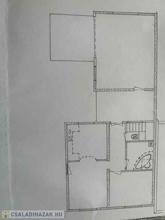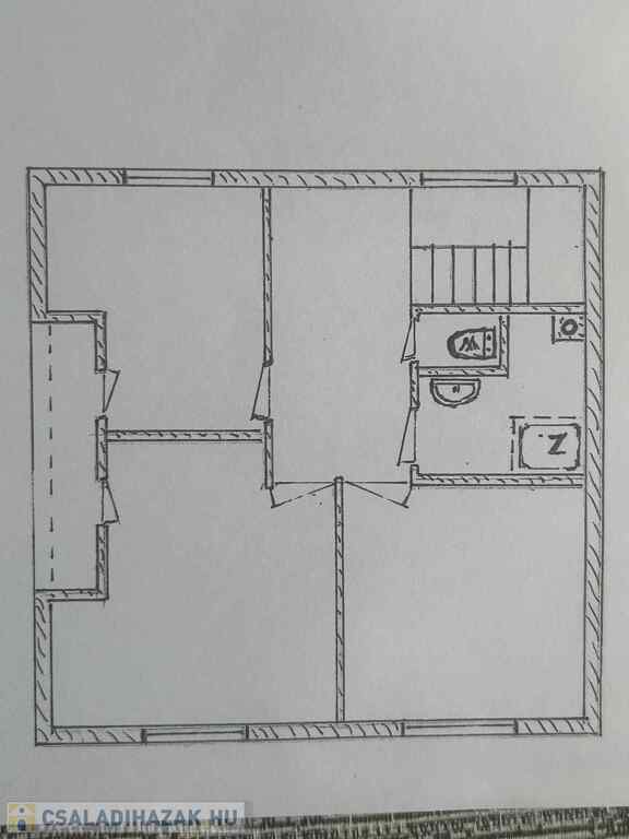 Földszint: nappali, konyha + étkező, fürdőszoba, külön WC, közlekedő, lépcsőház