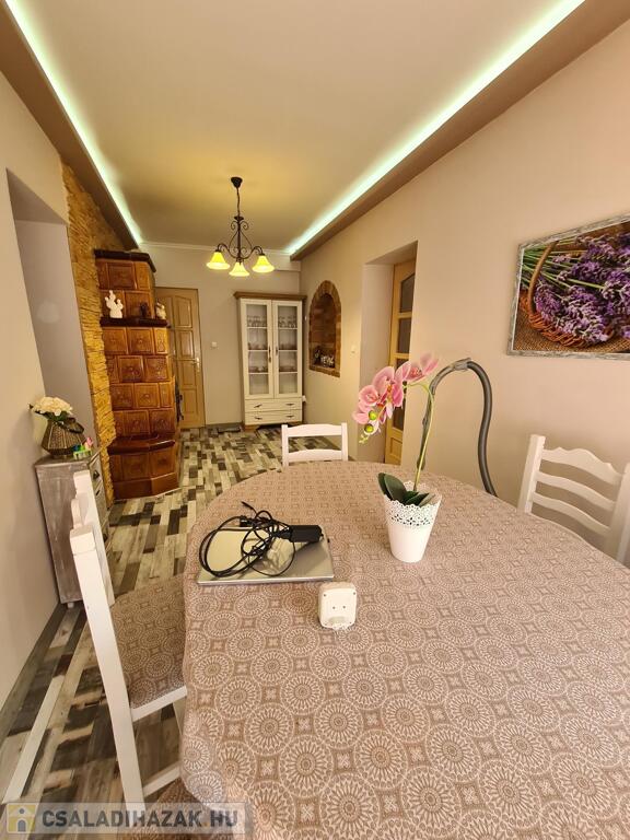 A családi ház redőnyözött műanyag nyílászárókkal, klímákkal, energia takarékos LED világítással felszerelt, fűtését egyedi gázfűtés és cserépkályha biztosítja.