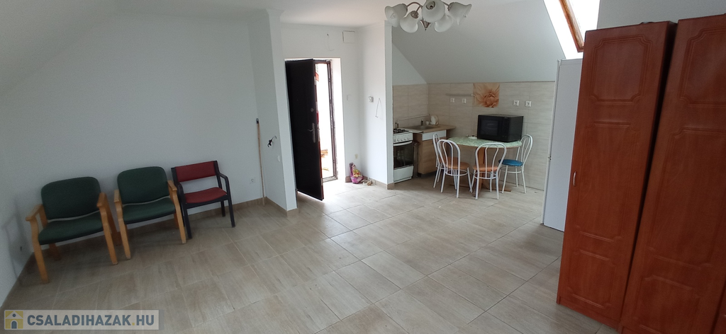 Az ingatlan földszinti része 150 nm-es, 2 szoba, nappali-konyha-étkező, nagy fürdőszoba, külön WC, kamra, és egy társalgó található amelyből megközelíthető az alagsor amelyben akár Wellness rész is kialakítható. A felső szint külön külső feljárattal rendelkezik, ahol 2 db külön bejáratú 36-36 nm-es önálló lakrészek kerültek kialakításra. A lakrészekben 1 tágas szoba, fürdőszoba-WC vel, és egy konyharész található.