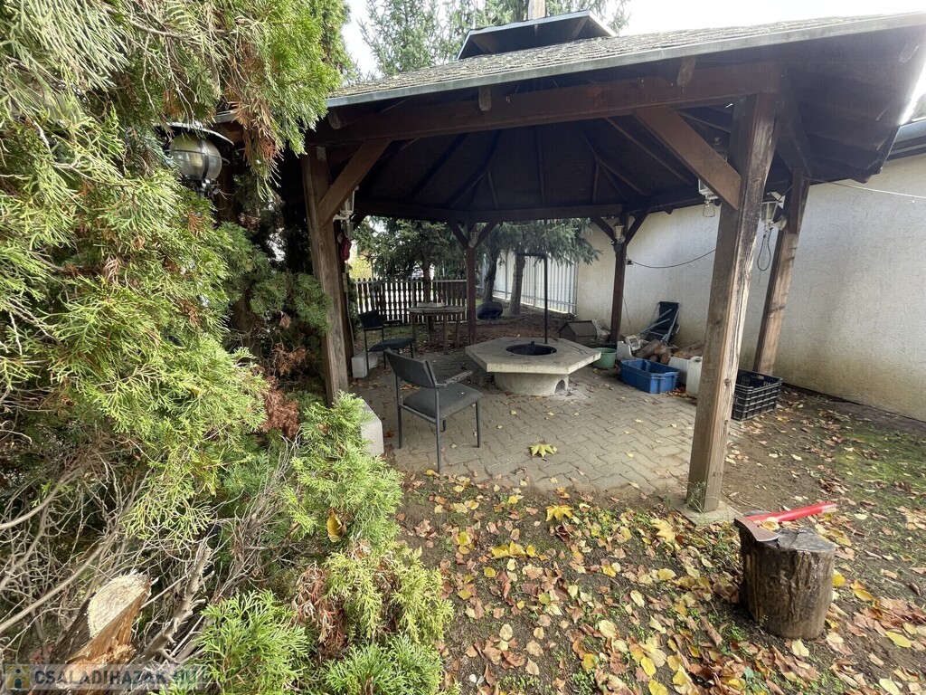 Eladó Nyíregyháza–Nyírszőlősön, egy 2000-ben épült, tégla falazatú, 5 cm hőszigeteléssel ellátott, 96 m²-es családi ház. A 2050 m²-es, két utcára nyíló telek kiváló elhelyezkedésű és sokoldalúan hasznosítható. A lakóházban három tágas szoba, nappali, külön fürdőszoba és WC, kamra, valamint igényesen kialakított, gépesített konyha található. Az épület belmagassága egyedi, 2,40 méter, amely otthonos, kellemes térérzetet biztosít. A műanyag nyílászárók redőnnyel és szúnyoghálóval felszereltek, a komfortot két klíma biztosítja. A házhoz tartozik egy 20 m²-es fedett terasz, nyugati–keleti fekvéssel. Gránit párkányok, betonfödém, gázcirkó fűtés, valamint riasztórendszer teszik teljessé a kényelmet. A telken fúrt kút és házi vízmű is található. A gondozott udvaron filagória és kerti tó kapott helyet, a telek két utcáról is megközelíthető. Az ingatlan aszfaltozott utcában helyezkedik el, kiváló lakóközösségben. A telken egy 171 m²-es, csarnok jellegű melléképület is található, 6,5 méteres belmagassággal, 8 méter hosszú szerelőaknával és irodahelyiséggel, amely vállalkozás, raktározás vagy műhely céljára is kiválóan alkalmas. A környék központi elhelyezkedésű, a közelben iskola, óvoda, bölcsőde, gyógyszertár, boltok és buszmegálló is megtalálható, mindössze néhány perc sétára. Az ingatlan így kiváló választás mind családok, mind vállalkozók számára.Az ingatlan azonosítója: 99906Érdeklődni: +36703610015 Az ingatlan azonosítója: 99906 Érdeklődni: +36703610015