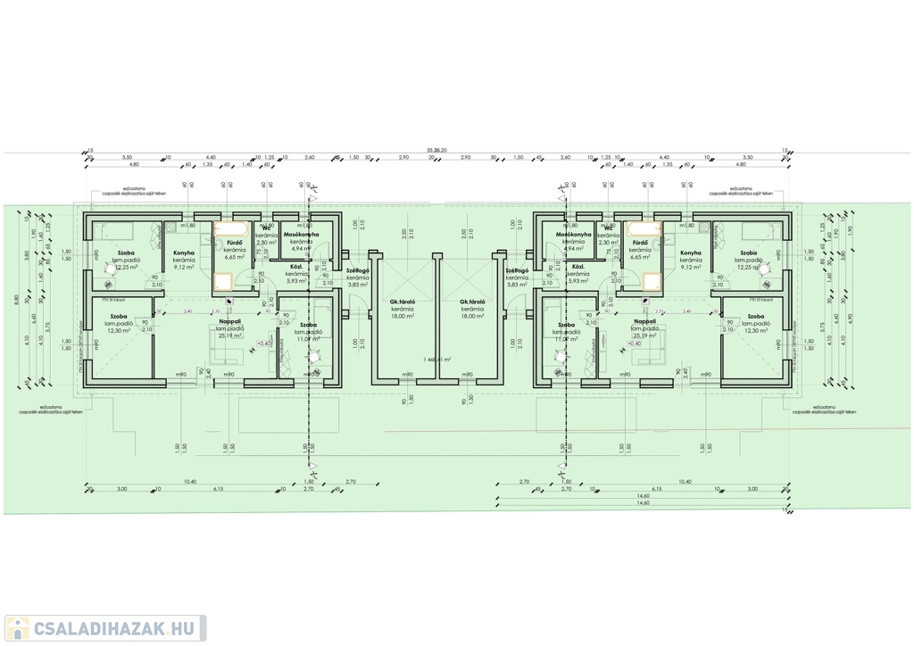 Szigetelés: Az ikerházak dupla falazattal és extra szigeteléssel elválasztottak, teljesen különálló mérőórákkal