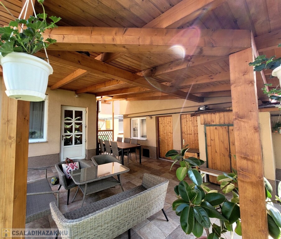 Az ingatlan udvara 457 nm., parkosított, öntözését fúrt kút biztosítja, itt helyet kapott még melléképület, 2 pince, 2 állásos garázs.