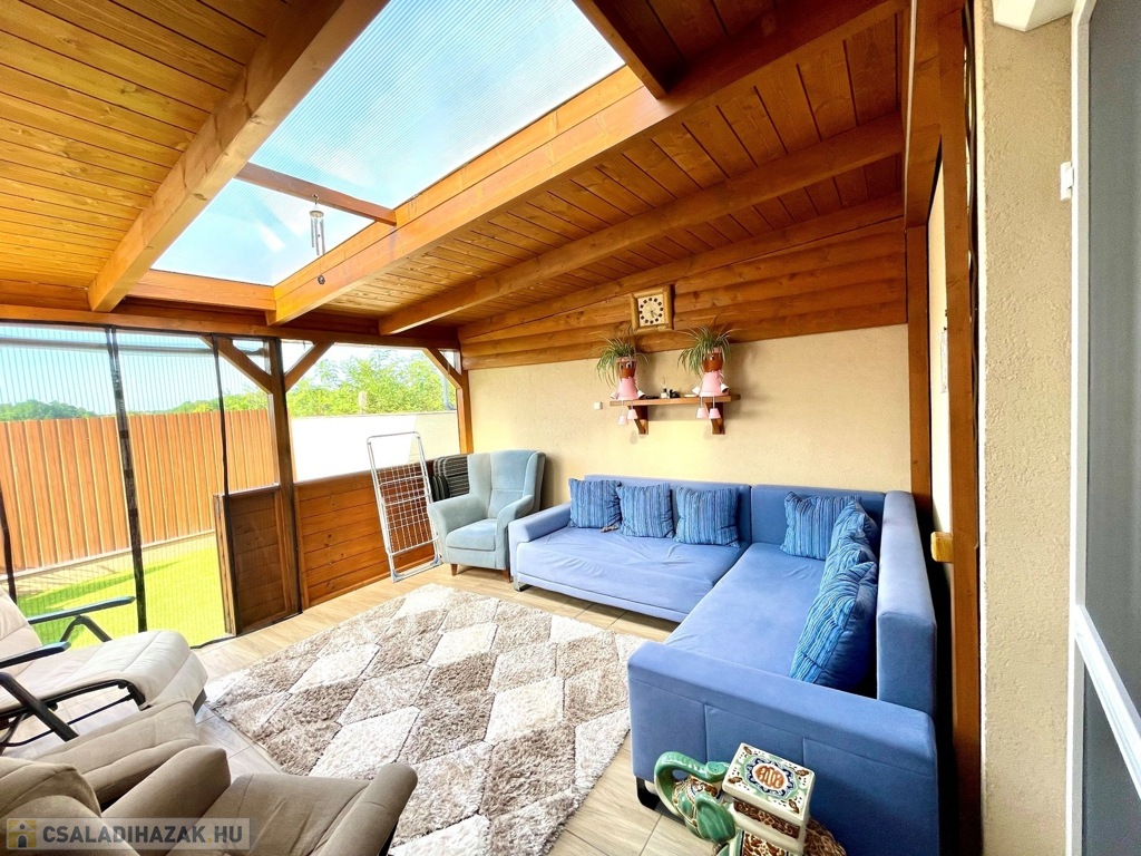 Praktikus elrendezésű: Nappali- konyha-étkező egy légtérben, 3 külön nyíló szoba, gardrób, tágas fürdőszoba, valamint fedett-zárt terasz biztosít kényelmet a mindennapokban, valamint külön szekcionált garázskapuval ellátott 1 állásos garázs.