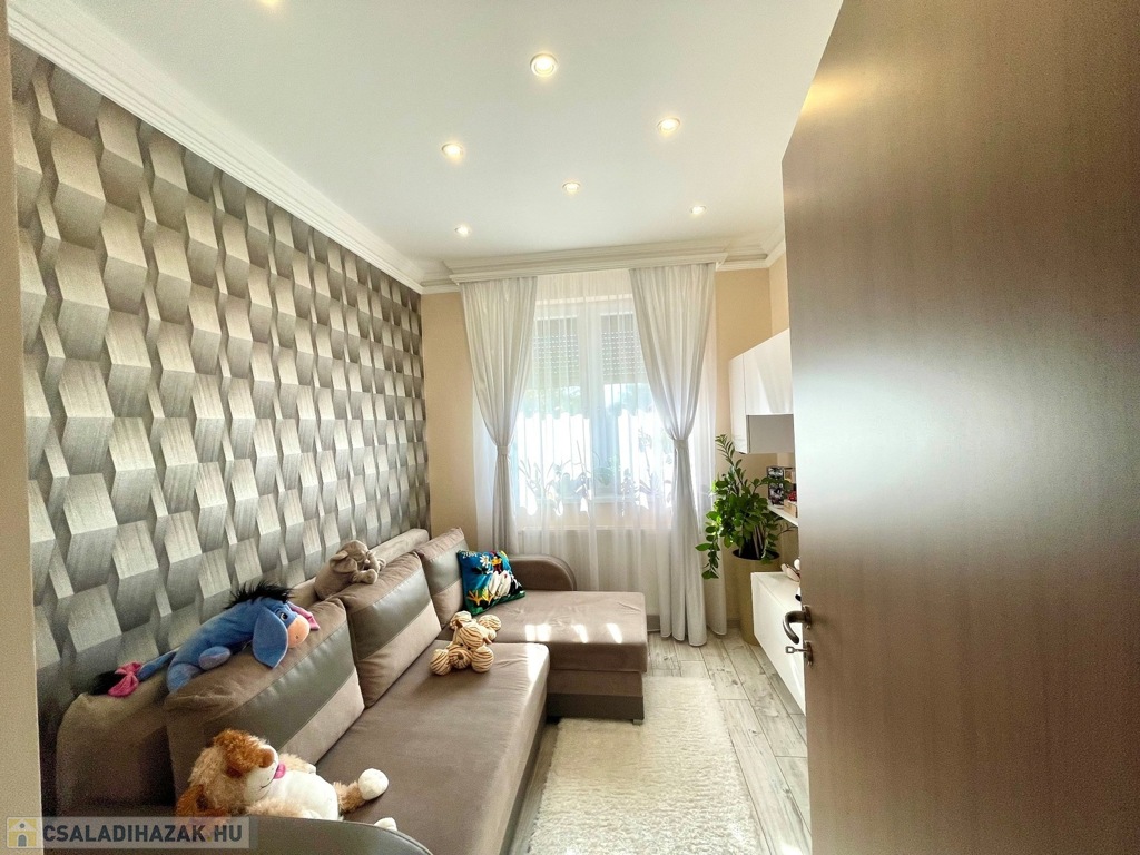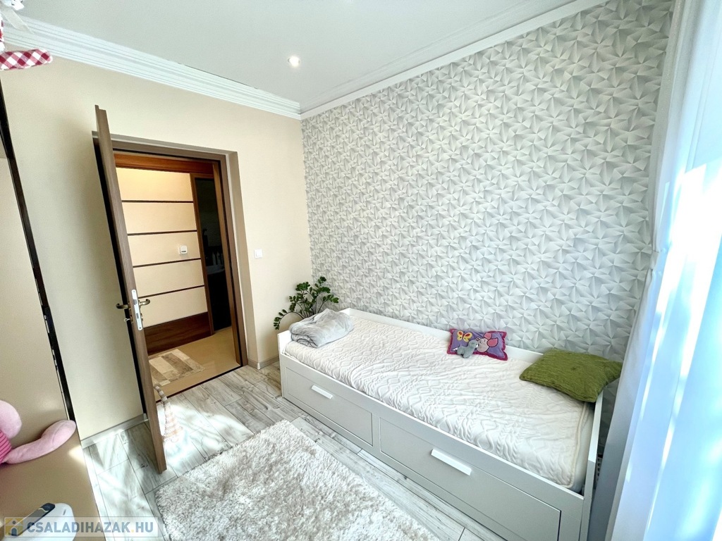 Nyíregyháza–Nyírszőlős bevezető szakaszának kedvelt, új családi házas övezetében eladó egy 93 nm-es, kiváló állapotú, 3 szobás + nappalis ikerház. Az ingatlan egy 470 nm-es, parkosított és térkövezett telken helyezkedik el. Az ikerház 2015-ben épült, a garázs mentén összeépítve, 2 garázzsal.
