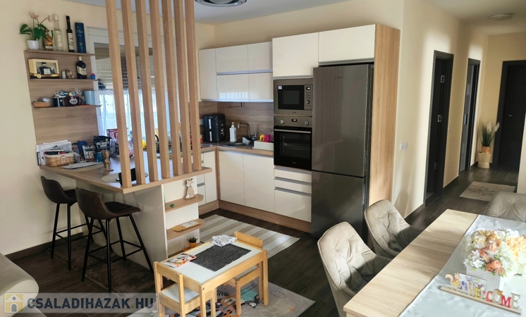 Nyíregyháza-Borbányán a Tünde utcai körforgalom közelében új építésű, magánúttal rendelkező övezetében eladó egy 2022-es építésű, nettó 106 m2 alapterületű, 3 szoba, nappalis, modern, fiatalos kialakítású és berendezésű családi ikerház. Három hálószoba, nappali-konyha-étkező, mosókonyha, fürdőszoba( káddal és zuhanyzóval), külön wc, egy állásos garázs és tágas, 18 nm2-es terasz található az ingatlanban.