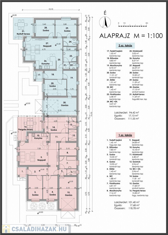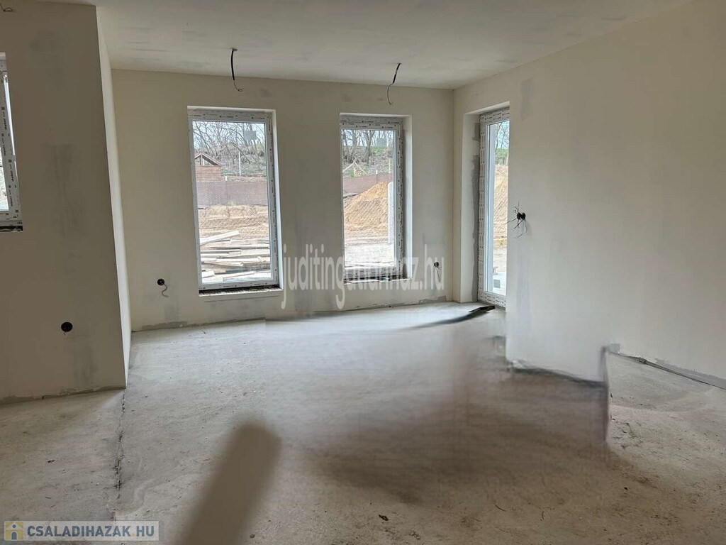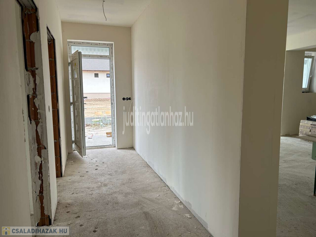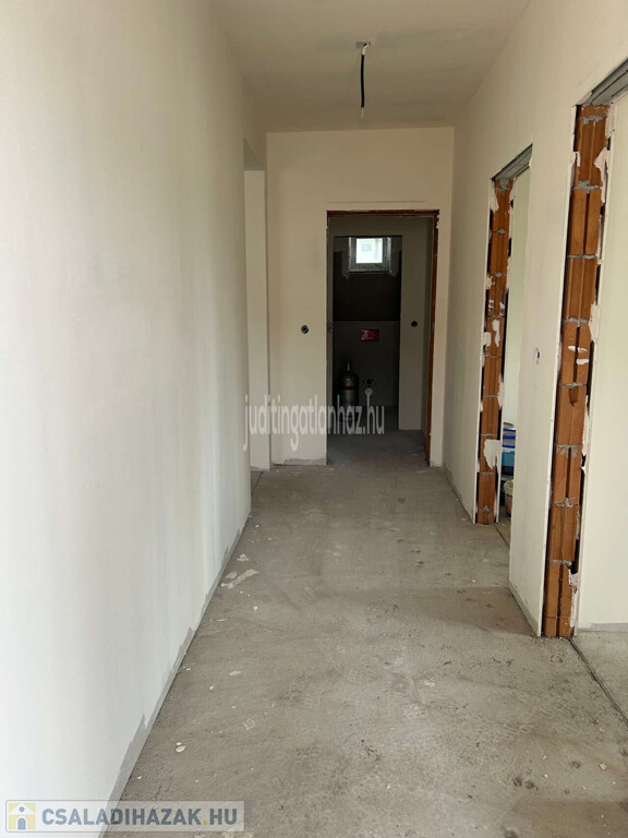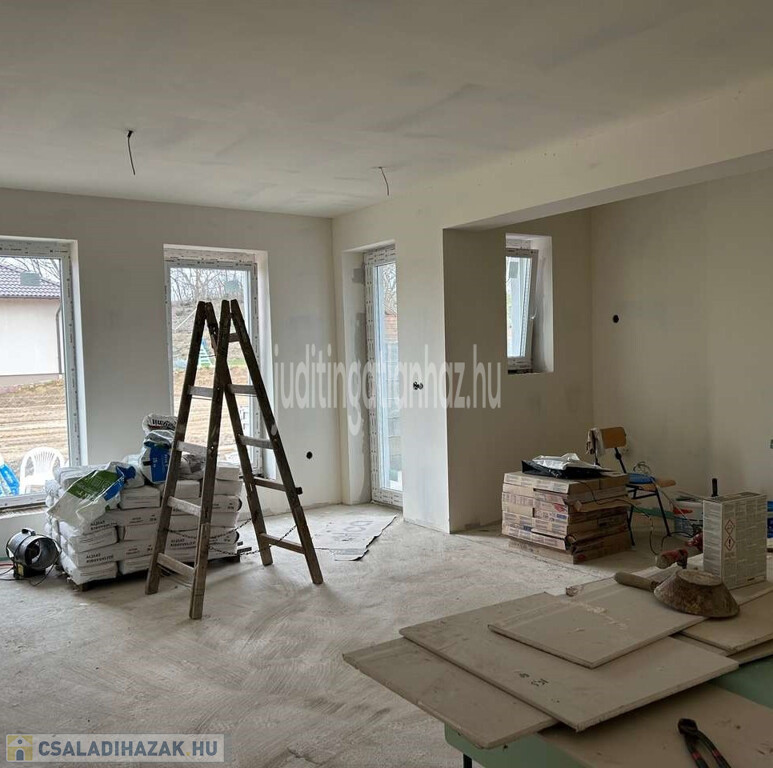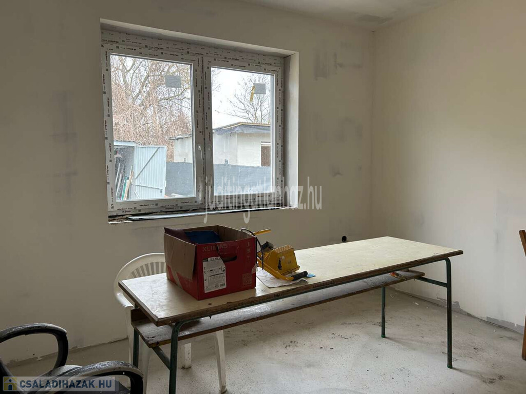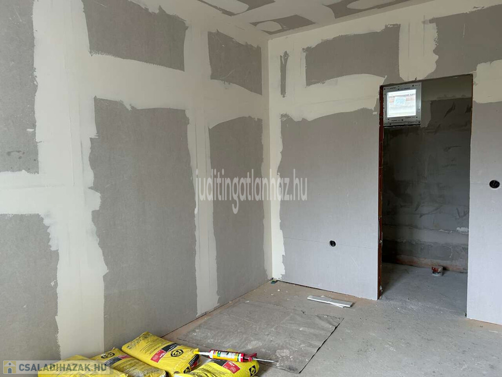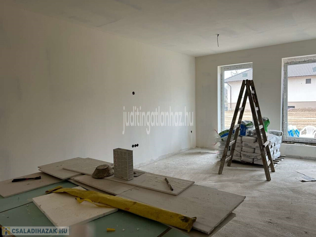 Nyíregyháza, Oros eladó új építésű iker családi ház mely jelenleg is építés alatt áll a házak 111 és 118 m2-s, három különnyíló szoba, nappali+étkező+konyha egy térben, fürdő szoba, külön wc, zuhany+wc, mosókonyha, gardrob, továbbá 11 és 13 m2-s nyitott és pergolás burkolt terasz, 17 m2-s garázs melynek automata kapubejárata lesz, fűtése hőszivattyú mely padlóra vezérelt, nyílászárók három réteg üvegezésű fehér műanyag. Az utcafronti ingatlan 300 m2-s telekkel rendelkezik a hátsó 750 m2-s telket birtokolhat, szép kerítés, térkövezett járda és garázs felhajtó tartozik mindkettőhöz. A házak porotherm 30-s téglából épülnek, belső válaszfal 10-s tégla, falak belülről kartonozva, külső nikecel szigetelés 15 cm-s, mennyezet fémvázra erősített tűzálló gipszkarton rajta pára áteresztő fólia és 30 cm-s kőzetgyapot szigetelés, fafödémes a tető beton cseréppel fedve alatta hővédő fólia, padló burkolat laminált lapok és járólap. A szaniterek a belső ajtó és a burkolat még kiválasztható. Birtokba adás 2026 tavasz vége! Minden kedvezmény igényelhető!