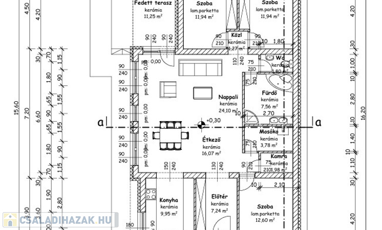Nappali–konyha–étkező: - fedett teraszkapcsolattal,