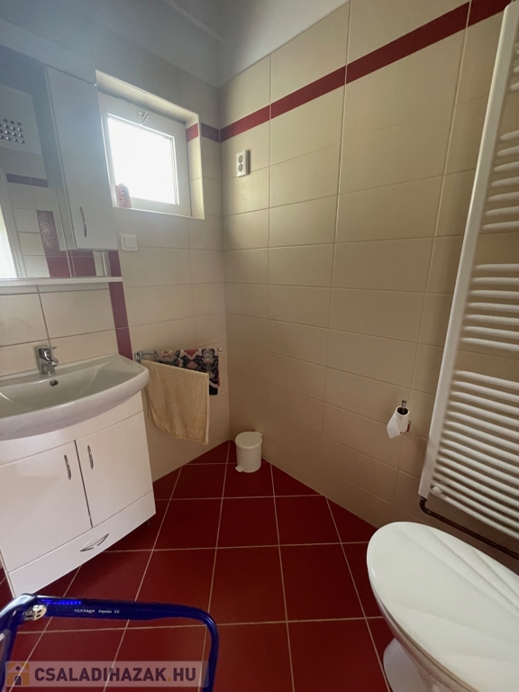 tágas szoba, hall, zuhanyzós fűrdőszoba mellékhelyiséggel, konyha, kamra, előszoba