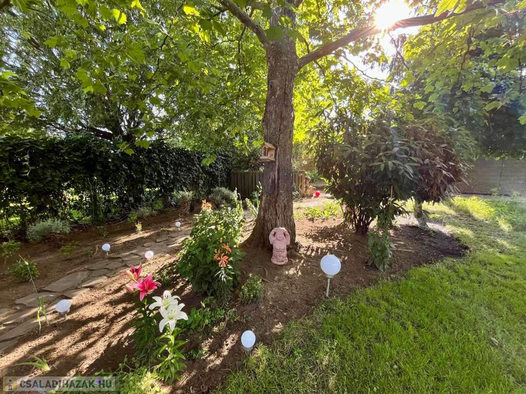Nyíregyháza, Újkistelekiszőlőben eladó első tulajdonos által 2001-ben épített kizárólag magas minőségű anyagokból, kiváló állapotú folyamatosan karbantartott energia takarékos, repedés és vizesedés mentes szép családi ház rendezett kerttel. Az ingatlan fűtött alapterülete 126 m2-s, 38-s Porotherm téglából épült rajta 2*3 cm polisztirolgyöngy hőszigetelő vakolat a tető hódfarkú kettős fedés, három különnyíló szoba, nappali, külön konyha+étkező, fürdőszoba külön 2 db. wc., laminált padló és natur kerámia burkolat, fűtése egyedi gáz, padló fűtés, kerámia kályha és klíma a használati víz ellátás napkollektorokkal+ 200 L melegvíz tárolóval működik, három rétegű üveg 4 éves műanyag nyílászárók a ház alatt 50 m2-s pince található benne igény szerint szükséges negyedik szoba vagy tároló, wc, garázs (23,8 m2), kazánház van. A 813 m2-s parkosított teleken található még 28 m2-s nyitott terasz, kerti tároló, fúrt kút, ipari áram, riasztó. Ha ön szép igényes meghitt Rusztikus otthont szeretne ne habozzon jöjjön és tekintse meg ezt a kitűnő ajánlatot.