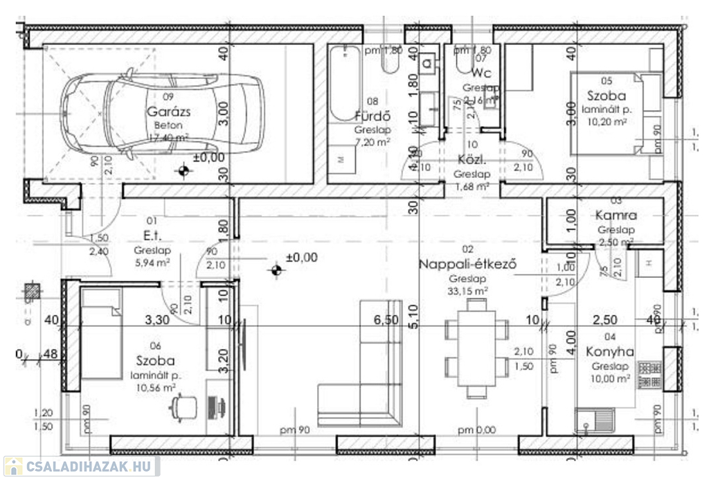- a ház alapterülete: 101nm.