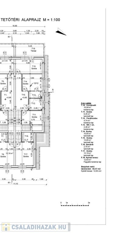 Földszinten: előtér, gardrób, nappali - konyha-étkező, melyhez fedett terasz kapcsolódik illetve 20 nm-es garázs.Emeleten: 4 hálószoba, gardrób, fürdőszoba és közlekedő található.