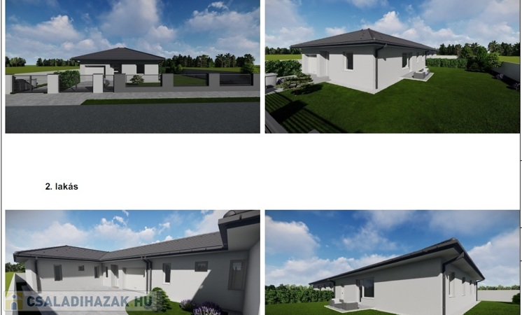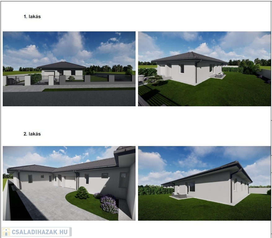 2 Lakás : 98,5 M Ft N + 4 Szoba, saját garázzsal, kertkapcsolattal, 97,07+ 19,13 nm-es garázzsal, összessen 116 nm.