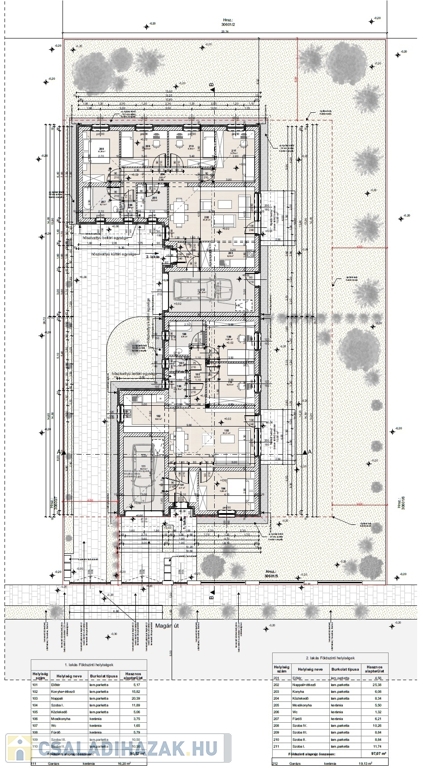 1 Lakás 91,5 M FT : A lakások praktikus elosztásúak: nappali + 3 szoba, saját garázzsal, kertkapcsolattal, 90,52 nm + 16,20 nm-es garázzsal rendelkezik, összessen 107 nm-es.