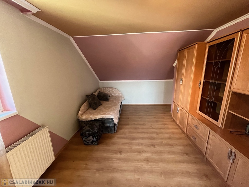Nyíregyházán a Korányi Frigyes úton szintes, 170 nm alapterületű, három szoba, nappalis családi ház eladó. Az ingatlan cserép fedésű, falazata szilikát és tégla, a nyílászárók műanyag nyílászárókkal, klímával szerelt. Fűtése gáz-cirkó. Az alsó szinten egy szoba, nappali, konyha, fürdőszoba és WC. található. Az emeleten két szoba, fürdőszoba és WC. van. A szobák burkolata laminált parketta, a többi helyiség járólapos. 6,5 KW napelem van a házon. Zárt terasz kapcsolódik a házhoz. Egy állásos garázs van a ház mellett. Az udvar parkosított, rendezett, térkövezett. Az ingatlan Dél -nyugati fekvésű. Ha hirdetés felkeltette érdeklődését és kérdése van hívjon bizalommal. Az ingatlan azonosítója: 94903Érdeklődni: +36209222558 Az ingatlan azonosítója: 94903 Érdeklődni: +36209222558