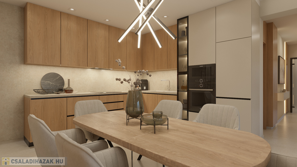 Beépített egyedi gépesített konyhabútort, előszoba fal, szobák teljes bútorzatát és felszereltségét ,(lámpák, csillárok energiatakarékos LED világítás), kerítés. Ide már csak a saját személyes dolgokat kell hoznia!
