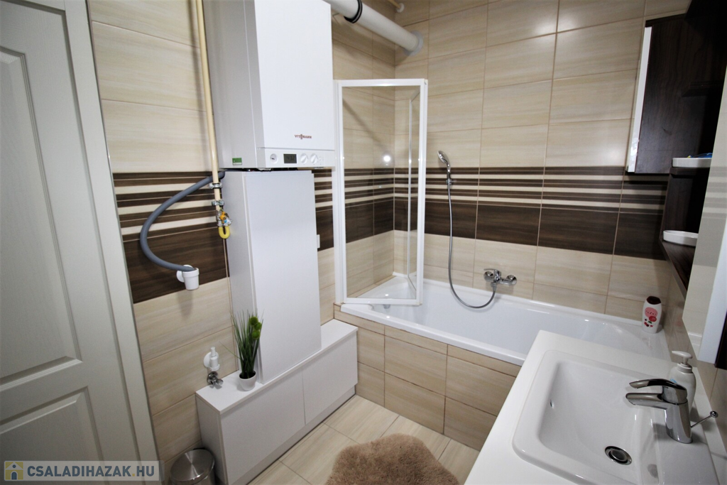 Nyíregyházán a Malomkertben 75+55 nm-es, 4 szoba, 2 konyhás, dupla komfortos, egyedi gázfűtéses, újszerű állapotú, 2 részre osztott apartmanház,350 nm-es telekterülettel eladó.