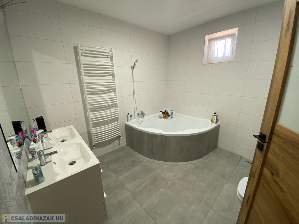 A ház építésekor szempont volt a megfelelő minőségű építőanyagok, burkolatok, szaniterek kiválasztása és beépítése. Az ingatlanhoz közvetlen bejárattal kapcsolódik még egy elektromos garázskapuval felszerelt, járólappal burkolt kétállásos garázs. A 900 nm-es telek egy része parkosított, amely fúrt kútról működő öntözőrendszerrel felszerelt.